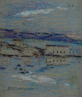 On the way to St. Ives in the summer of 1910 Florence stops in Newfoundland for the first time and creates this plein air sketch, coloured pencil and gouache, signed, Private Collection