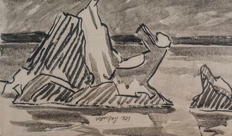 These icebergs caught her eye off the Newfoundland coast, ink drawing, signed, 1914, permanent collection Art Gallery of Hamilton