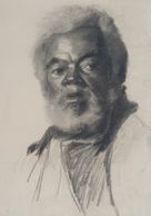We speculate that this gentleman could be European because of his costume and the paper has a French watermark, a charcoal and graphite on paper sketch is unsigned , C - 1913, Private Collection