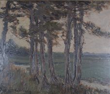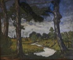 This painting is s very similar view of the north end of the grove to the flats, but this one is darker and more sombre, oil Unsigned, no date, Private Collection