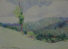 An unknown location in the picturesque hills of the Gatineau valley, coloured pencil, signed, no date, Private Collection