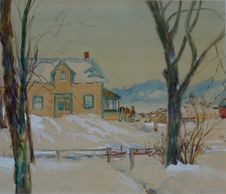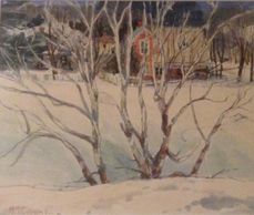 Looking in the opposite direction of the last painting we can see Inerlynn's snow covered pastures, an oil, signed, 1917, Private Collection
