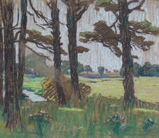 A study of the grove, also looking west different perspective as last, pastel, unsigned, C - 1934, Private Collection