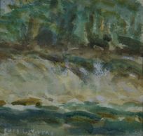 One of the many minor tumultuous falls that appear of the Gatineau River, this mottled painting watercolour, signed, C - 1930, Private Collection