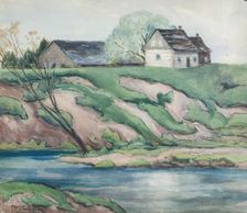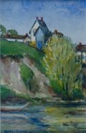 This home on the bank of an unknown river, like the many sites she painted scattered though the region. A watercolour, signed with no date, Private Collection