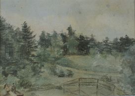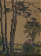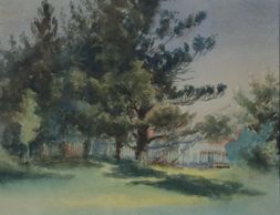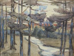 Looking through the grove to the west, an earlier painting, watercolour, signed, C - 1900, permanent collection Art Gallery of Alberta, Gift by Joan Hunt, 1985