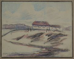 A drawing that we have not found as a finished painting, somewhere near the Maclaren's home, coloured pencil, signed, C - 1926, Private Collection