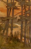 Again to the west as the sun sets, through a thicker part of the grove, watercolour, signed, C - 1915, Private Collection