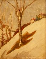 This snowy hillside is somewhere in the Gatineau region of Quebec, oil Signed, no date, Private Collection