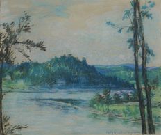 A lovely scene of quiet moment on the ever changing Gatineau River near Chelsea, watercolour, signed, C - 1928, Private Collection