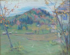This pretty fall scene is in the Gatineau region. A pastel that is signed, C - 1925, and from a private collection.