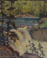 The aggressive rapids at the top of the Pagain Falls north of Wakefield on the Gatineau River, oil, signed, 1930, Private Collection