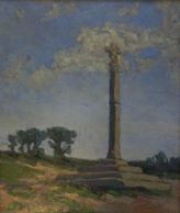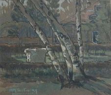 She found this interesting adobe house somewhere in California. This oil on canvas, signed,not dated, private collection