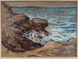 A rock with an interesting name on the shoreline, perhaps named for the Franciscans who earlier inhabited the area, pastel signed 1920, Private Collection