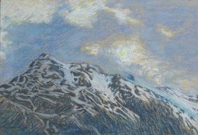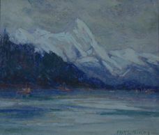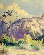 The great snow covered vistas of the Alaskan rockies are what Florence recorded for us on her trip to Skagway, pastel, signed,1920, Private Collection