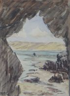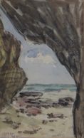 Wandering the bay in La Jolla California, Florence finds this cave, watercolour, monogram C - 1919, Private Collection