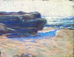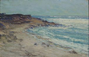 The seas roll in on this tranquil beach at La Jolla, California, oil, signed, 1921, Private Collection