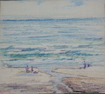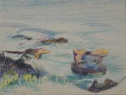 A simple drawing as she watched the ocean from her hotel, to pass the time, Coloured pencil, monogram, 1934, Private Collection