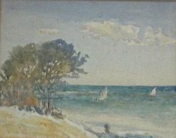 This scene is of an unknown beach near Stonington , Connecticut, watercolour, signed, C - 1918, Private Collection