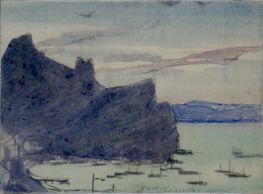 A different view from the same cave as the last painting, watercolour, monogram, C - 1919, Private Collection