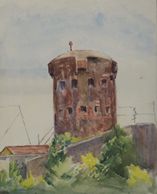 A tourist site while visiting her relatives in New Jersey becomes a painting, watercolour 1934, signed Private Collection