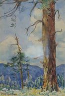 A glimpse at the many powerful trees that cover California, no question Florence was impressed oil signed 1920, Private Collection