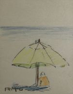 When near the beach in Ogunquit Maine, Florence spotted this solitary figure shaded from the sun, coloured pencil, monogram, c - 1918, permanent collection, Agnes Etherington Gallery, Queens University, Kingston