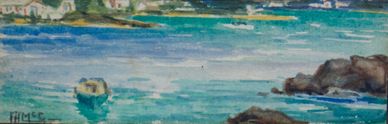 There are a couple of trips to Bermuda after the war, they seem more of a vacation than working trips. She was accompanies by her sister Catherine. The monograms a sign of earlier work, watercolour, monogram, no date, Private Collection
