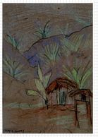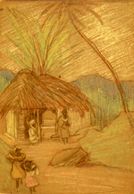 A scene of local life in an unknown Caribbean village, likely Jamaica coloured pencil, signed, 1925, Private Collection.