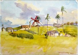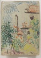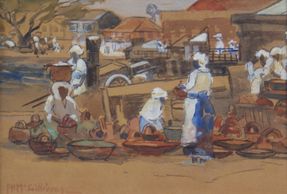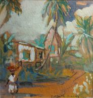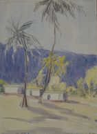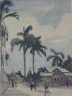 We get a view of history, in this village scene from Trinidad, over the next few years she visits the Caribbean many times. watercolour, signed, C -1921, private collection
