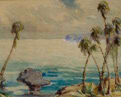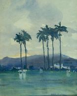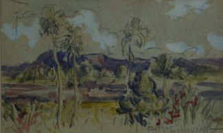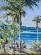 A simpler but pretty painting typical of the swaying palms she enjoys creating in her tropical works, watercolour 1925, signed Private Collection