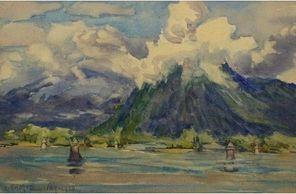 This vibrant cloud covered mountain we suspect to be in Trinidad , watercolour, signed, 1920, Private Collection