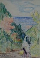 A women appears to be coming up the path from the beach, coloured pencil, title and date 1922 verso, Private Collection