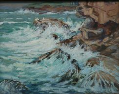 Waves washing over the rocks, at this unknown location on the Trinidad coast, watercolour, signed C - 1921, Private Collection